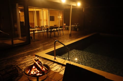Located in the same prefecture as Glamp Dome Fuji Oshino, "Private Villa Glamping Mount Fuji Nakakko" is a high-end glamping facility with in-room hot springs, a private pool, and a campfire.